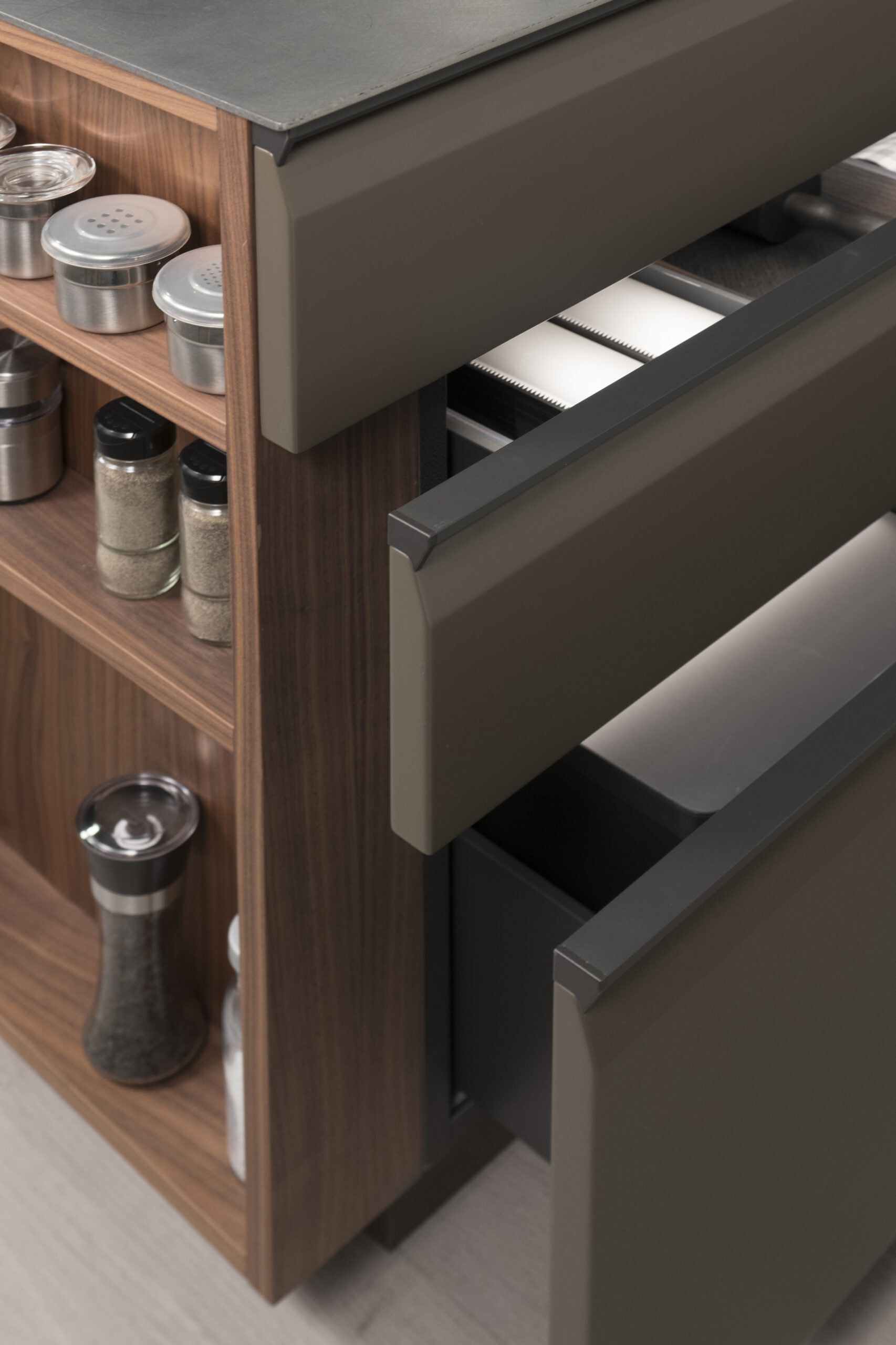 Custom walnut cutlery holder and organizer with anthracite accessories. A functional and elegant interior that takes care of every detail.